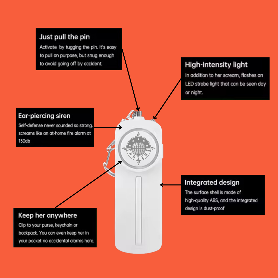 If you're feeling uneasy, trust your instincts. Simply pull the top to activate the LOUD siren and flashing strobe light, drawing immediate attention to your location. Once you feel secure, replace the top to turn off the alarm