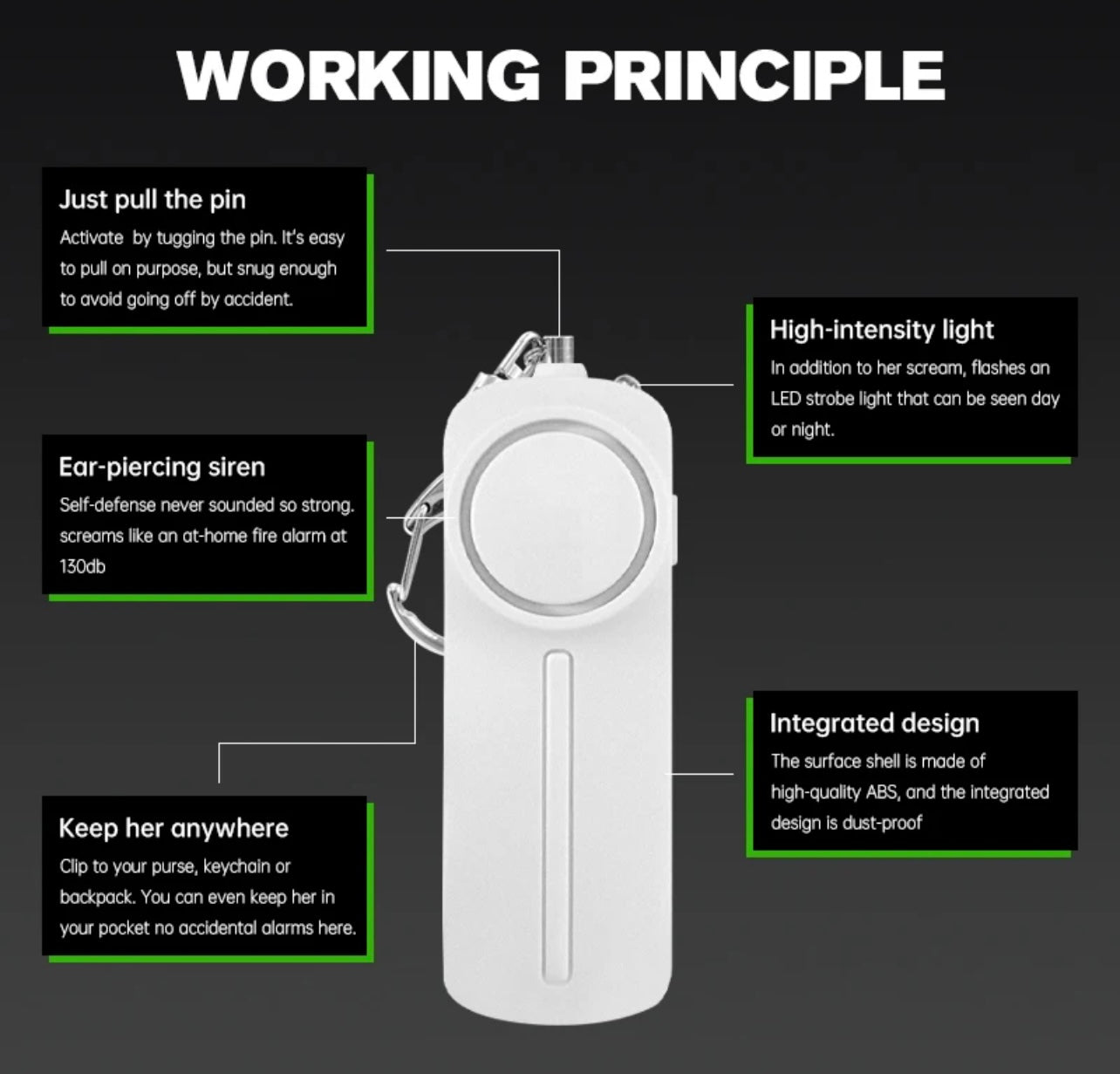 If you're feeling uneasy, trust your instincts. Simply pull the top to activate the LOUD siren and flashing strobe light, drawing immediate attention to your location. Once you feel secure, replace the top to turn off the alarm